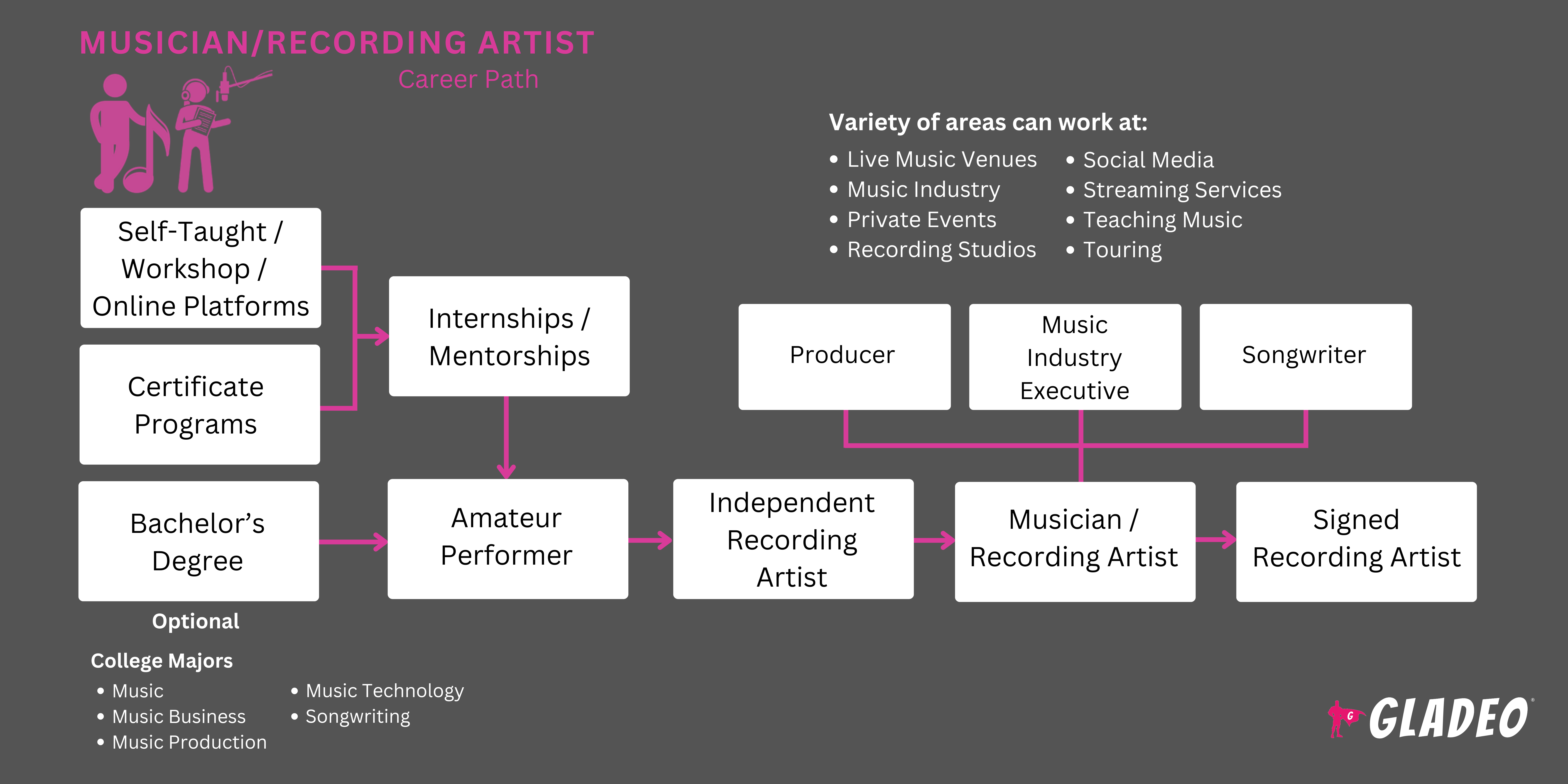 - There isn't a straightforward path to becoming a Musician or Recording Artist. Many are self-employed or work on a project basis.